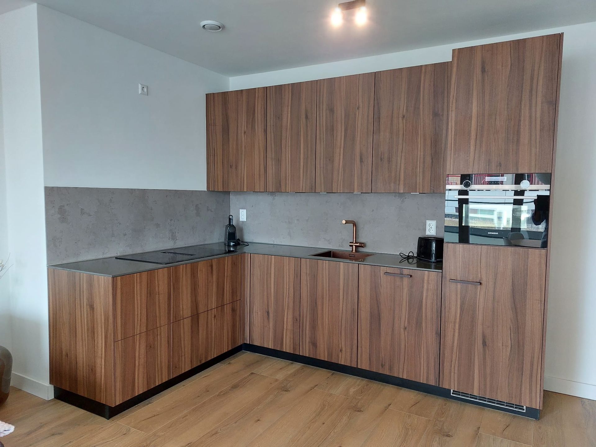 The open kitchen is equipped with an oven, microwave, electric hob with an integrated hood, refrigerator, freezer dishwasher, vacuum cleaner and washing machine.